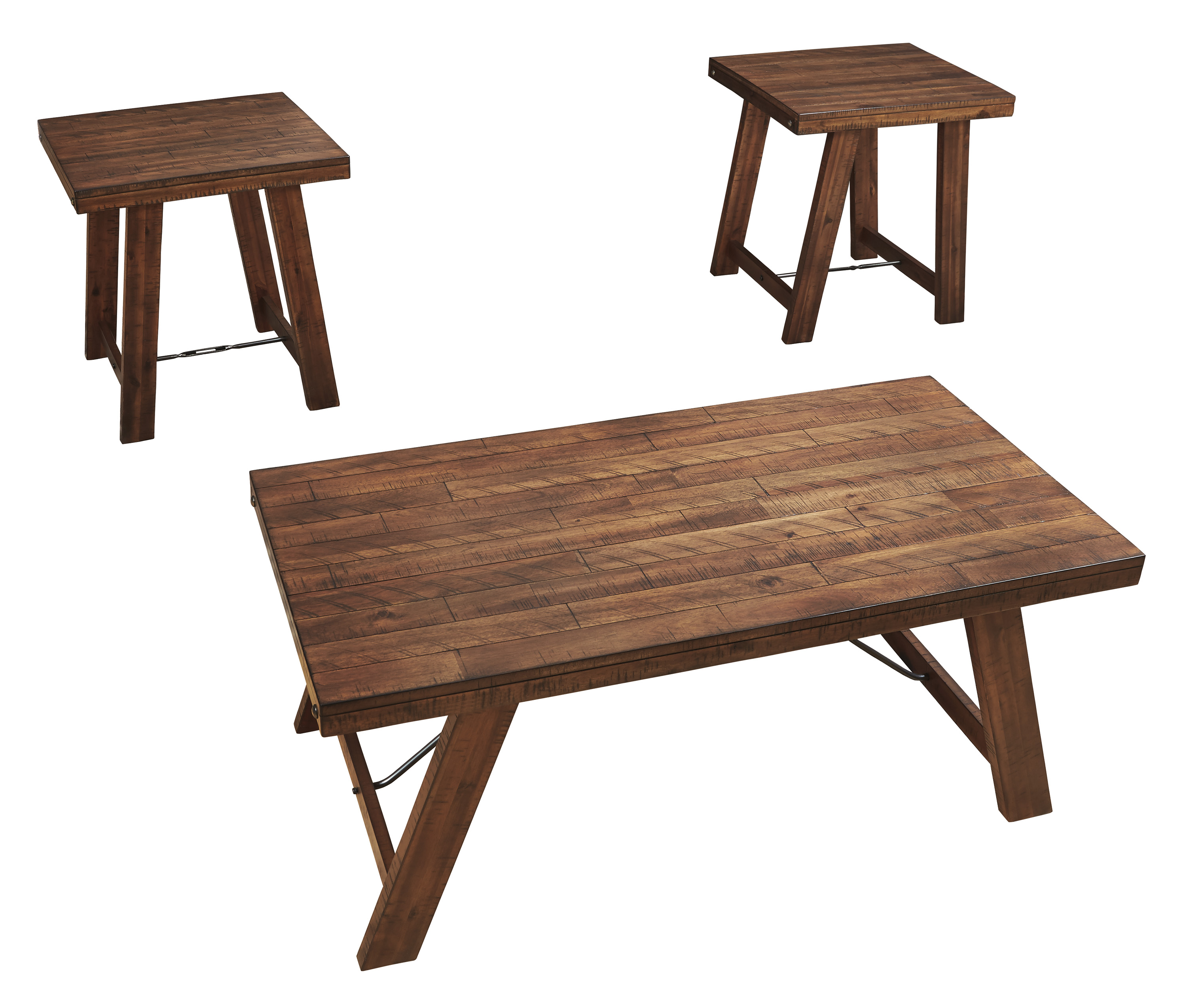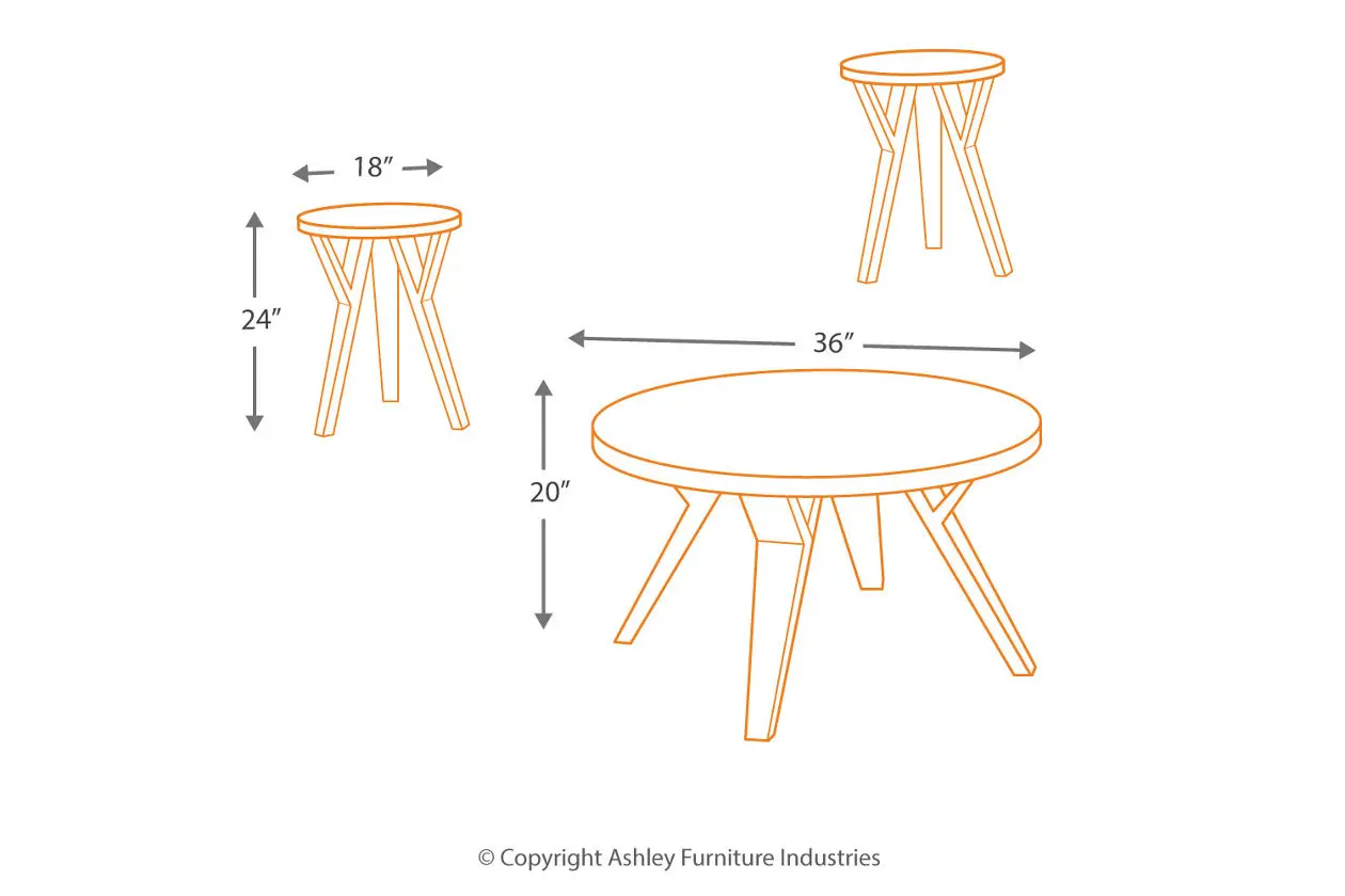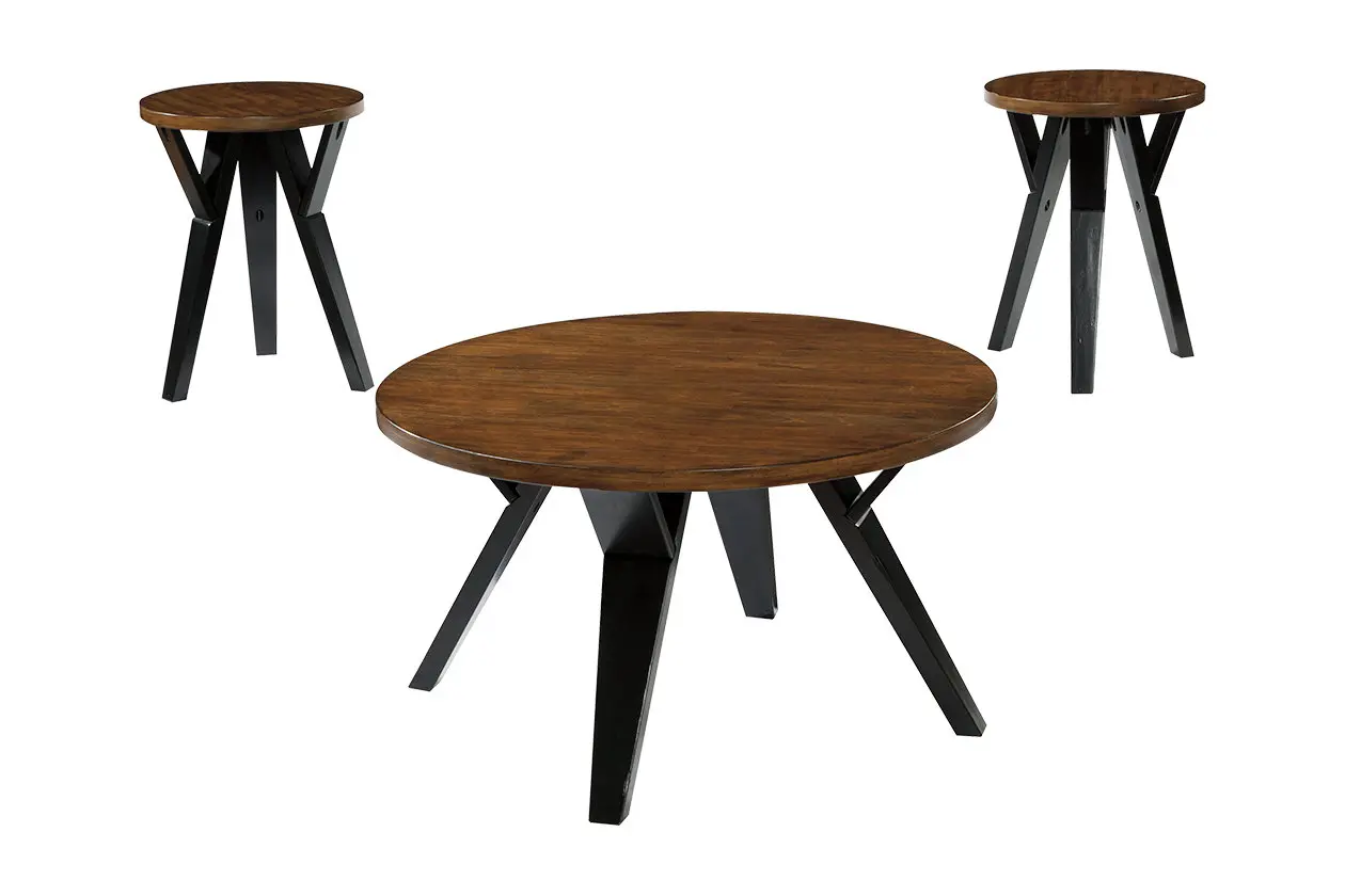 20 Ingel Collection T267-13 3-Piece Occasional Table Set with Cocktail Table and 2 End Tables in Two-Tone Brown Signature Design by Ashley T26713. Raebecki Table Set of 3 Original Price 39999. Two-tone design and mix of angular legs with round tabletops make for a stunning juxtaposition of shapes and colors.