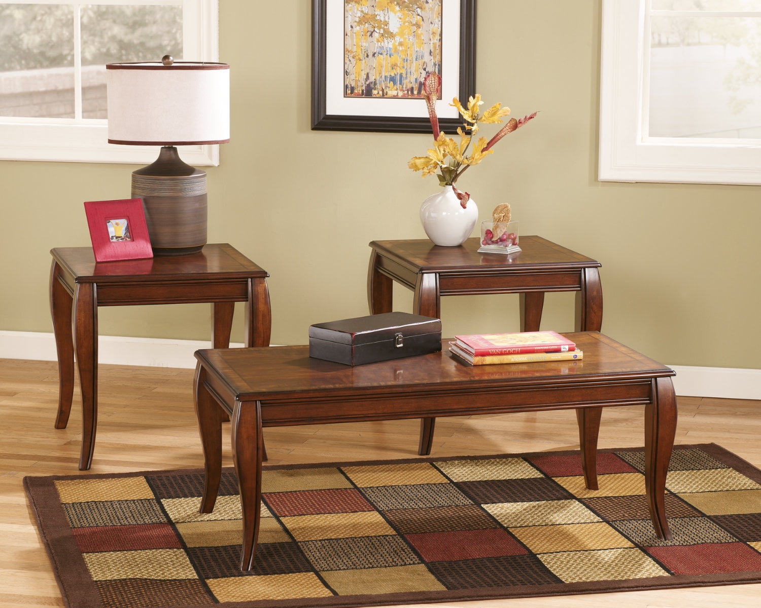 Amazon Com Signature Design By Ashley Mattie Traditional 3 Piece Coffee Table Set Reddish Brown Furniture Decor