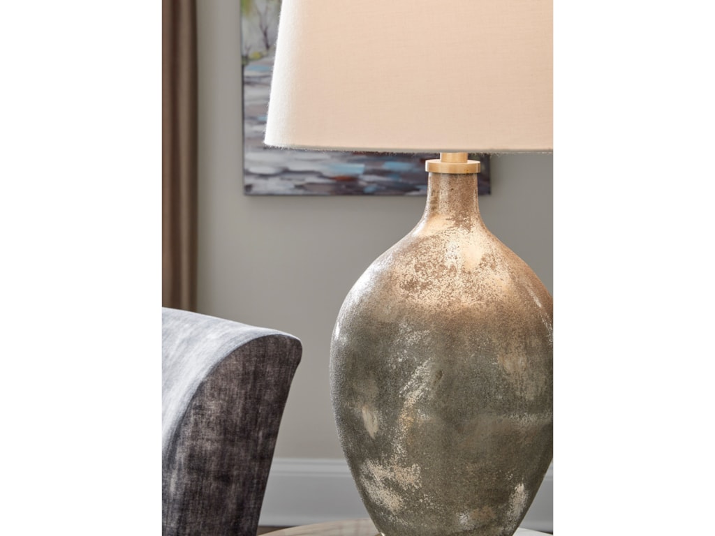Signature Design By Ashley Lamps Contemporary Jemarie Gray Gold Finish Glass Table Lamp Wayside Furniture Table Lamps